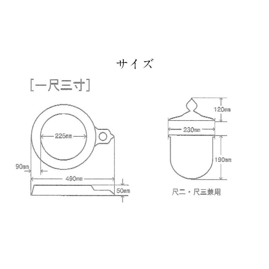 他の画像を見る ★護摩壇用の護摩釜です 一般的に使用する鉄製 寺院用仏具 護摩釜(鉄製)1尺3寸 /護摩壇 釜 1尺3寸/尺三/尺3(39cm) 金属 祈願 祈祷 国産 密教法具 ごまがま 価格 ¥ 142,000 税込 詳細を見る お気に入りに登録する (0)