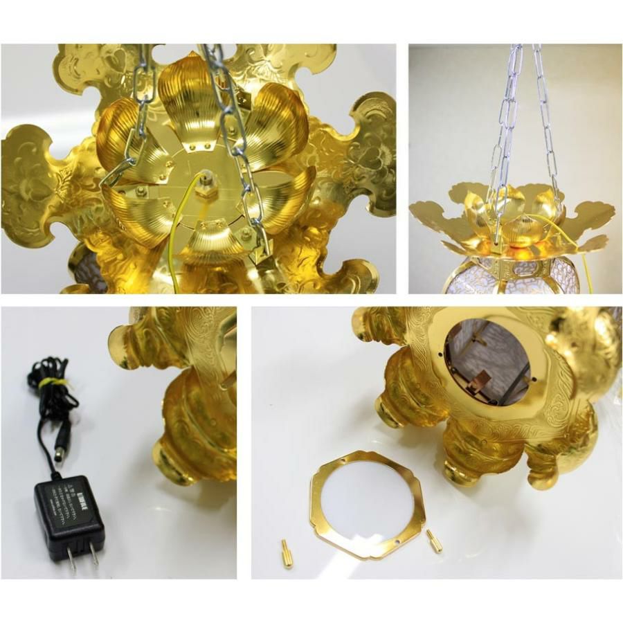 他の画像を見る LED照明付きで、明るく照らします。 吊燈籠(吊り灯篭) 銅地 院玄型【金メッキ】 1.2尺 直径36cm 1対 寺院用 仏具灯篭(とうろう)灯籠 燈籠 LED 本堂 屋内 お堂 価格 ¥ 226,110 税込 詳細を見る お気に入りに登録する (0)