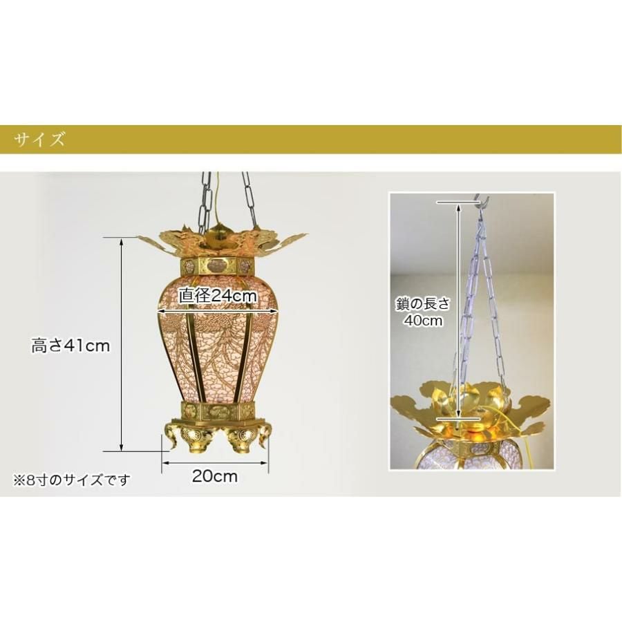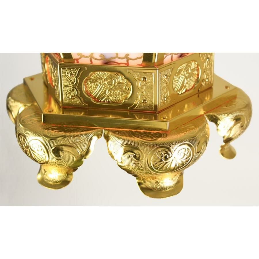 他の画像を見る LED照明付きで、明るく照らします。 吊燈籠(吊り灯篭) 銅地 院玄型【金メッキ】 8寸 直径24cm 1対 寺院用 仏具灯篭(とうろう)灯籠 燈籠 LED 本堂 屋内 お堂 価格 ¥ 191,480 税込 詳細を見る お気に入りに登録する (0)