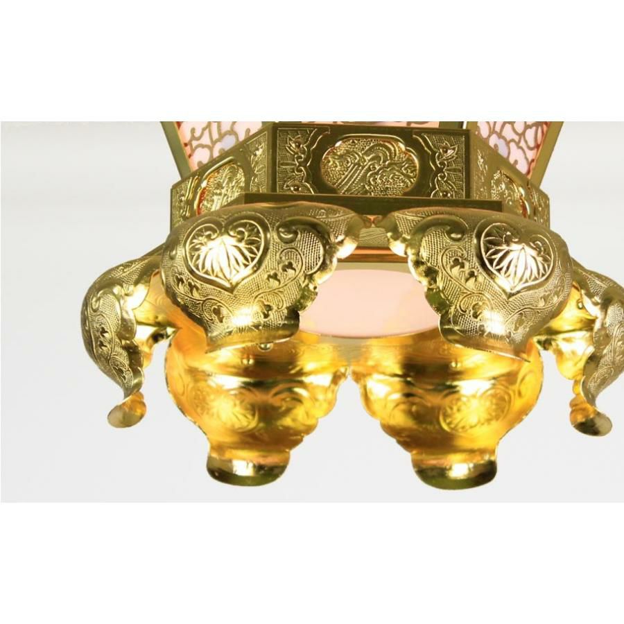他の画像を見る LED照明付きで、明るく照らします。 吊燈籠(吊り灯篭) 銅地 院玄型【金メッキ】 1.3尺 直径39cm 1対 寺院用 仏具灯篭(とうろう)灯籠 燈籠 LED 本堂 屋内 お堂 価格 ¥ 249,540 税込 詳細を見る お気に入りに登録する (0)