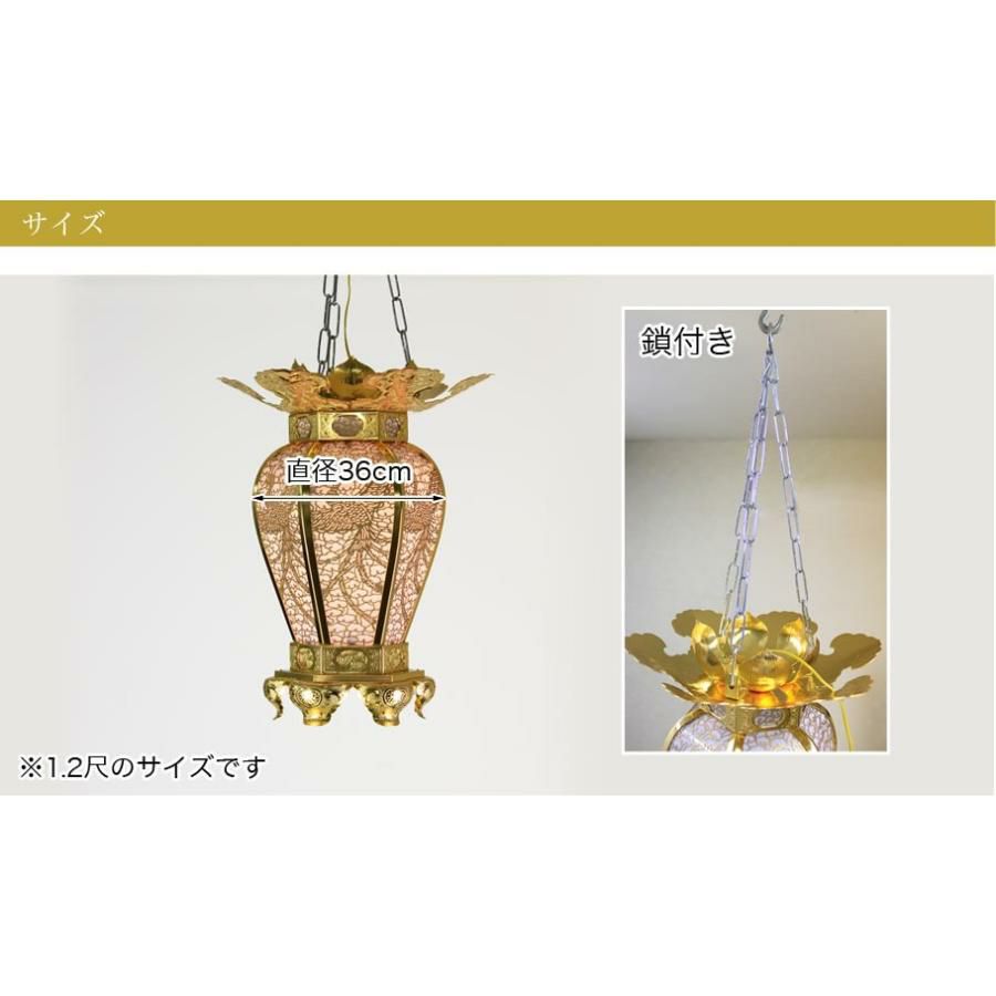 他の画像を見る LED照明付きで、明るく照らします。 吊燈籠(吊り灯篭) 銅地 院玄型【金メッキ】 1.2尺 直径36cm 1対 寺院用 仏具灯篭(とうろう)灯籠 燈籠 LED 本堂 屋内 お堂 価格 ¥ 226,110 税込 詳細を見る お気に入りに登録する (0)