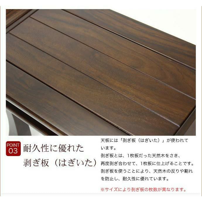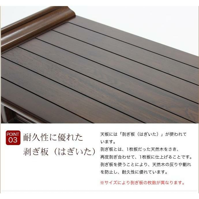 他の画像を見る 寺院用仏具 供物台 法事机 前机 立焼香机 立焼香台 中央香台 経机 花台 オーダーメイド机【サイズ・色オーダー可能】組立式御机 「桧木目」 幅3尺5寸(105cm)-奥行8寸(24cm) 価格 ¥ 66,530 税込 詳細を見る お気に入りに登録する (0)