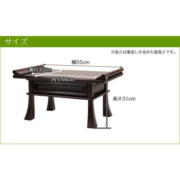 他の画像を見る 唐木仏壇や家具調仏壇におすすめです 高級経机をお探しの方におすすめ! 経机 紫檀調・黒檀調 30号 幅90cm お供え机 御供物台 仏前 お葬式 葬儀 法事 3尺 テーブル 唐木 価格 ¥ 153,780 税込 カートに入れる お気に入りに登録する (0)
