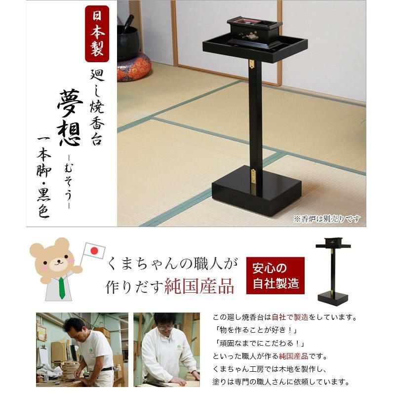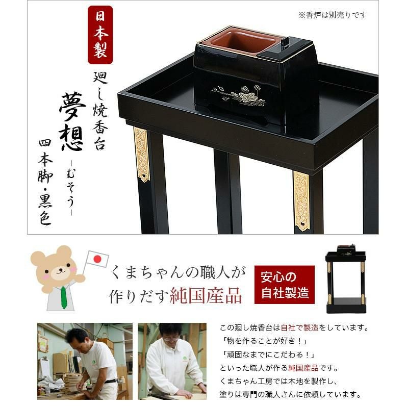 他の画像を見る 自社工場で製作!高さをオーダーメイドできます 「日本製」廻し焼香台「夢想(むそう)4本脚」黒色 立焼香台 焼香台 立焼香机 寺院仏具 価格 ¥ 49,800 税込 詳細を見る お気に入りに登録する (0)