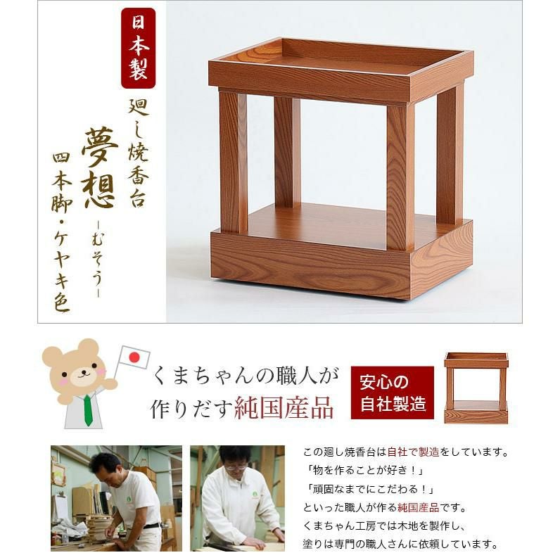 他の画像を見る 自社工場で製作!高さをオーダーメイドできます 「日本製」廻し焼香台「夢想(むそう)4本脚」ケヤキ色 立焼香台 焼香台 立焼香机 寺院仏具 価格 ¥ 49,800 税込 詳細を見る お気に入りに登録する (0)