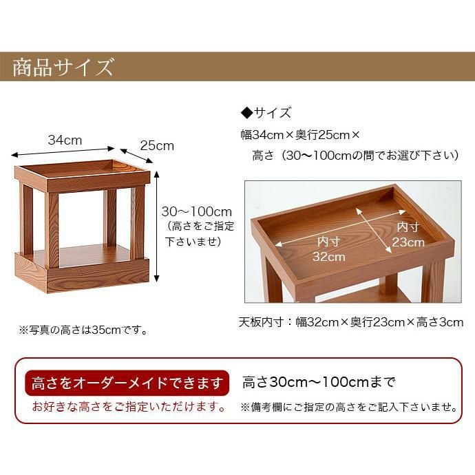 他の画像を見る 選べるサイズの万能台・机 【オリジナル机】【別注】【神社】【お宮】 オーダーメイド机【サイズ・色オーダー可能】組立式御机 「桧木目」 幅2尺(60cm)-奥行8寸(24cm)寺院仏具 御供物台 法事机 前机 立焼香机 価格 ¥ 40,390 税込 詳細を見る お気に入りに登録する (0)