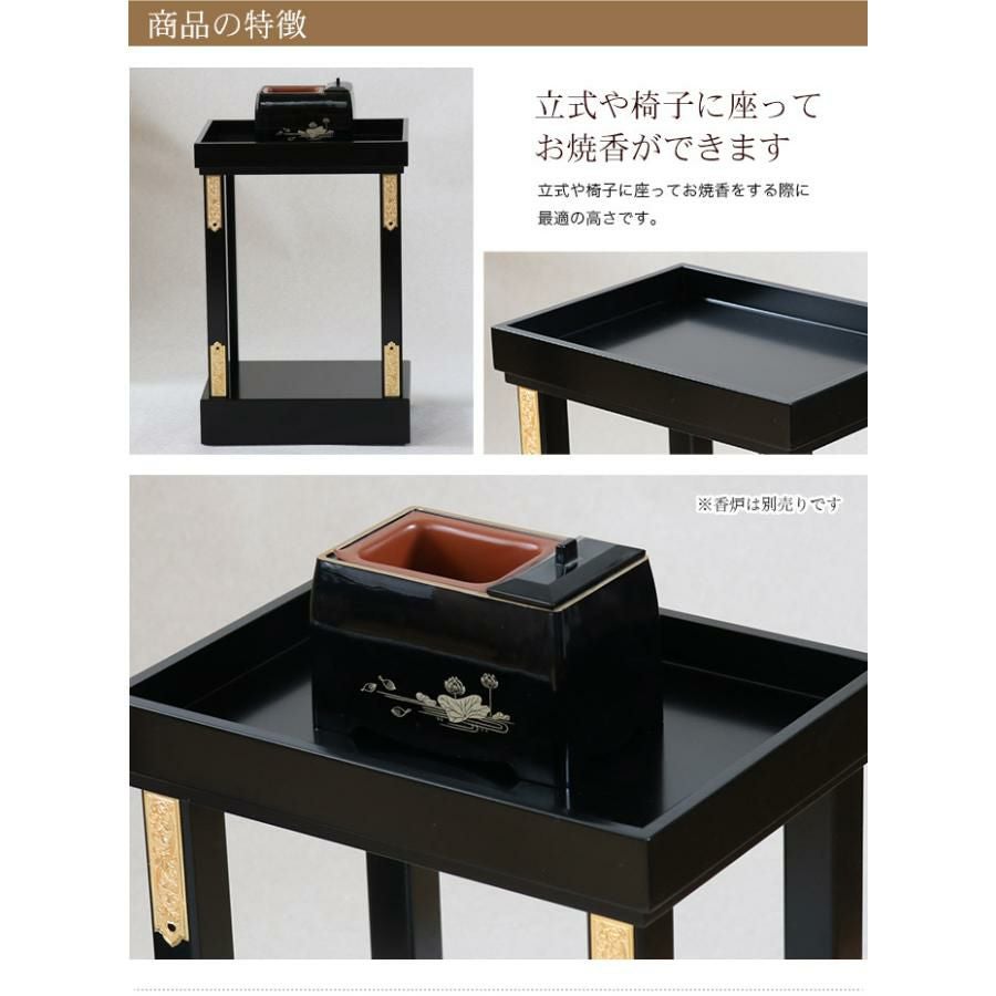 他の画像を見る 寺院用仏具 供物台 法事机 前机 立焼香机 立焼香台 中央香台 経机 花台 オーダーメイド机【サイズ・色オーダー可能】御机 「新・立焼香机」 幅5尺(150cm)-奥行1尺4寸(42cm) 価格 ¥ 237,600 税込 詳細を見る お気に入りに登録する (0)