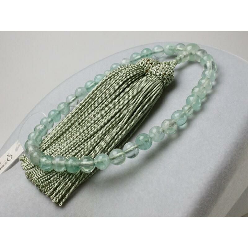 女性用高級数珠 「グリーンフローライト 共仕立て 37珠 正絹頭付房」 KL011