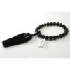 男性用高級数珠 「黒縞メノウ 共仕立て 22珠 正絹頭付房」 KM030