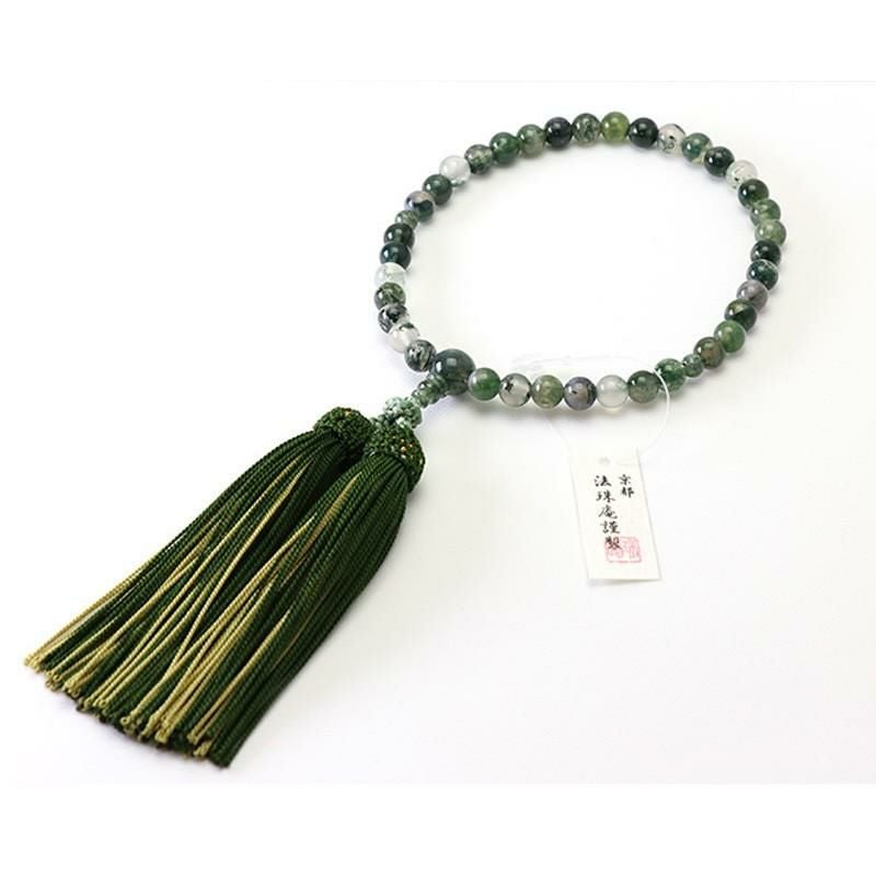 女性用京念珠・数珠 青苔メノウ正絹頭付房(KL017)