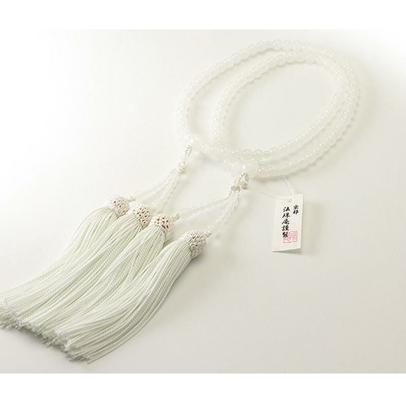 女性用高級念珠・数珠2輪 ホワイトオニキス水晶 正絹頭付房(KL026)