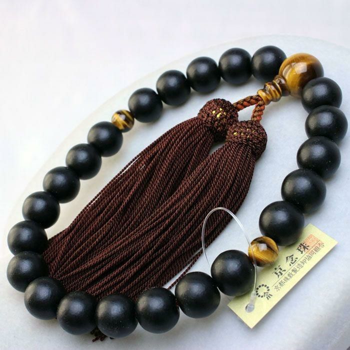 男性用高級念珠・数珠黒檀 虎目 正絹頭付房(KM009)