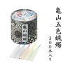 京の着物柄をデザインしたお洒落な筒の箱に、五色(紫・青・赤・黄・緑)の10分ローソクを詰め合わせた亀山五色蝋燭。毎日のお勤めに、気分に応じた色のローソクをお使いください。