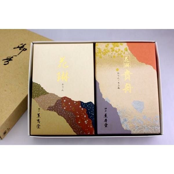 沈香木、伽羅木や漢薬など東洋の天然木にフランス製天然香水をあわせたまろやかな香りの【花琳】と、沈香、白檀、丁子等の天然漢薬を配合した高級線香【貴舟】のセットです。
