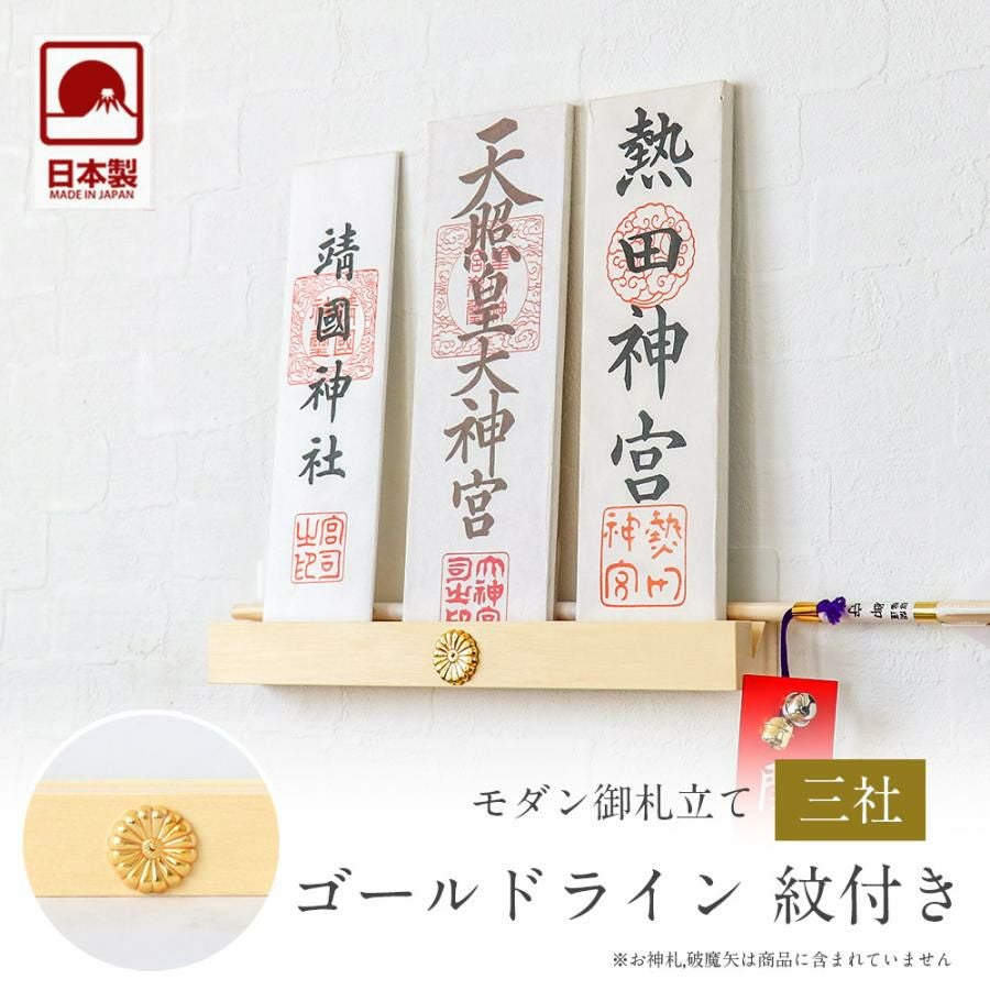 モダン神棚 「ゴールドライン 紋付き」 三社 壁掛け