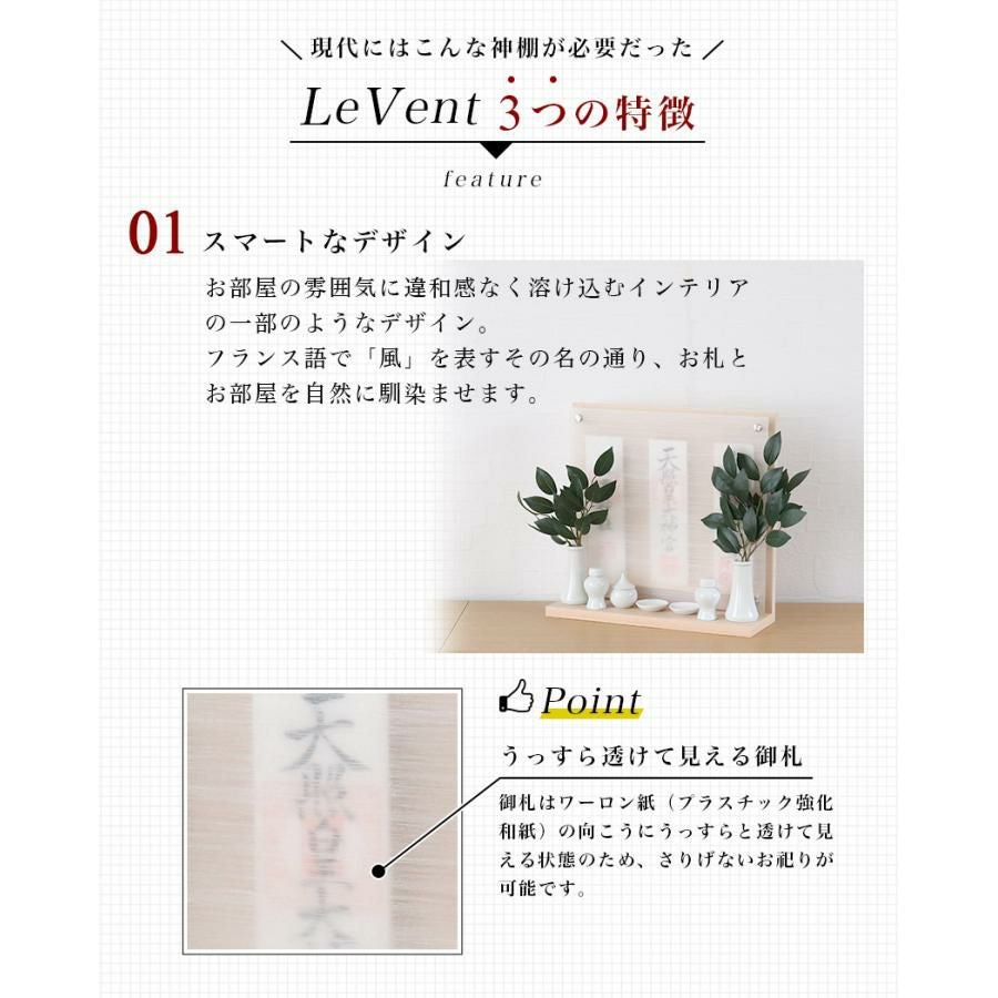 壁掛け モダン神棚 「Le vent -レヴェント-」 三社 シンプル 国産 日本製