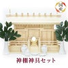 神棚「特選通し屋根三社(小)」に 「神具セット(小)」を合わせたお得な商品です。