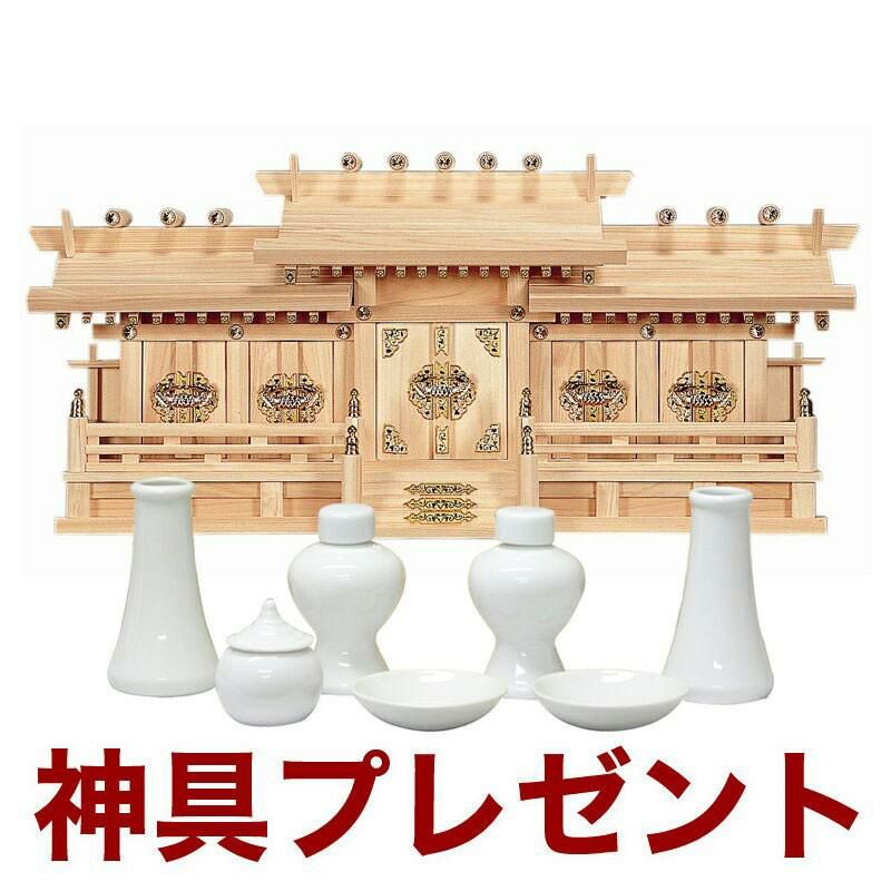 国産高級神棚 新寸屋根違い・五社(ひのき) No128 日本製 ヒノキ製 神具 神棚セット