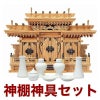 国産高級神棚 マス組付屋根違い三社(本けやき) No54 日本製 欅製 神具 神棚セット