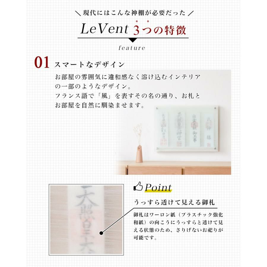 他の画像を見る 国産 日本製 オフィス 洋室 壁掛け 神棚 【受注生産品】壁掛け モダン神棚 「Le vent -レヴェント-」 四社 シンプル 国産 日本製 おしゃれ マンション レベント お札 価格 ¥ 50,000 税込 詳細を見る お気に入りに登録する (0)
