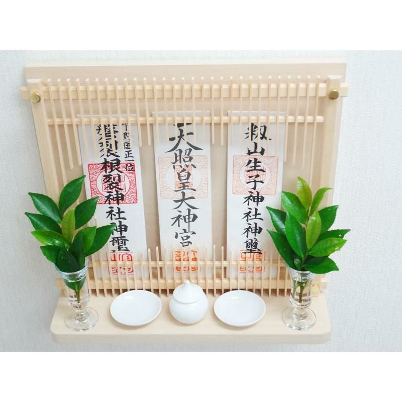 選べる2色 木目調のお札立て モダン神棚 「アポロ」 三社 壁掛け
