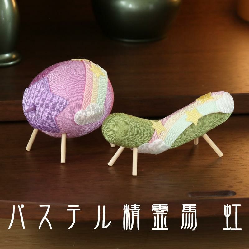 他の画像を見る お盆の盆棚にお供えものと一緒に お盆飾り パステル精霊馬 虹 (57-164) ちりめん 牛 茄子 胡瓜 縮緬 精霊棚 盆提灯 初盆 新盆 日本製 国産 価格 ¥ 2,480 税込 カートに入れる お気に入りに登録する (0)