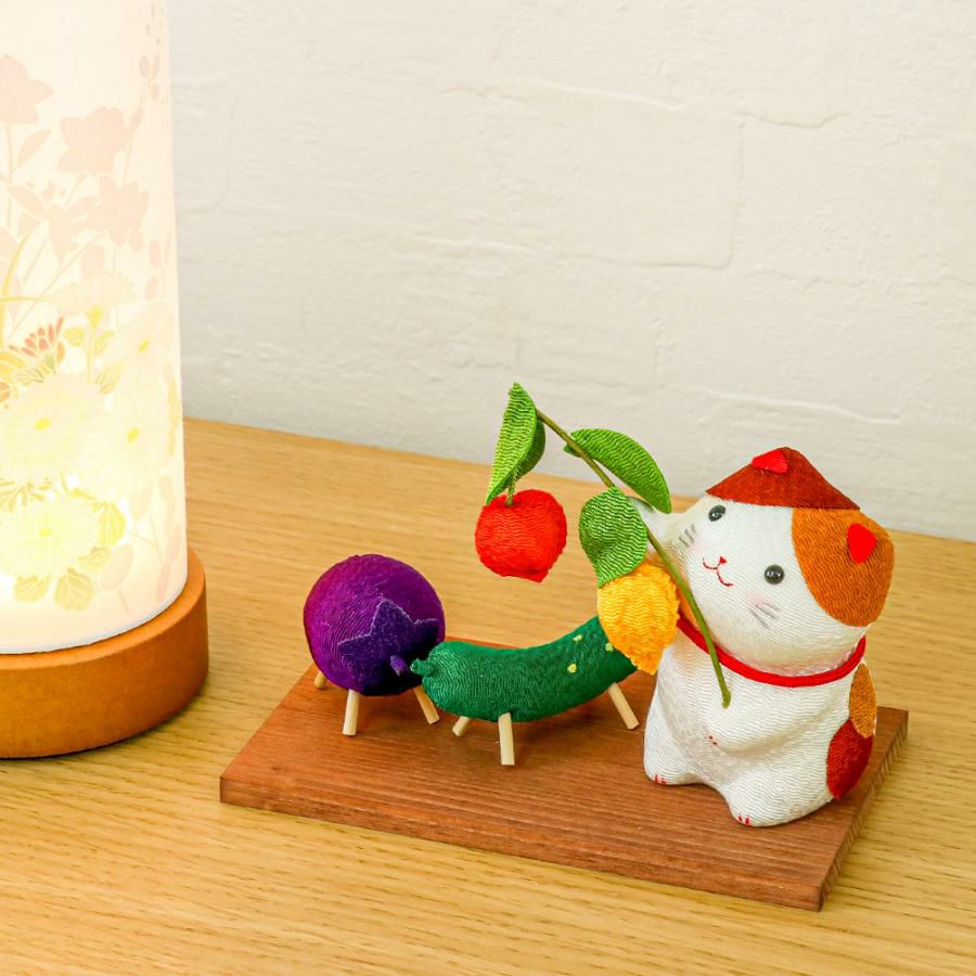 他の画像を見る お盆の盆棚にお供えものと一緒に お盆飾り ちりめん 三毛猫とお盆飾り (40-889) ペット 供養 縮緬 牛 馬 茄子 胡瓜 ほうずき 猫 精霊棚 盆提灯 初盆 新盆 日本製 国産 価格 ¥ 3,600 税込 カートに入れる お気に入りに登録する (0)