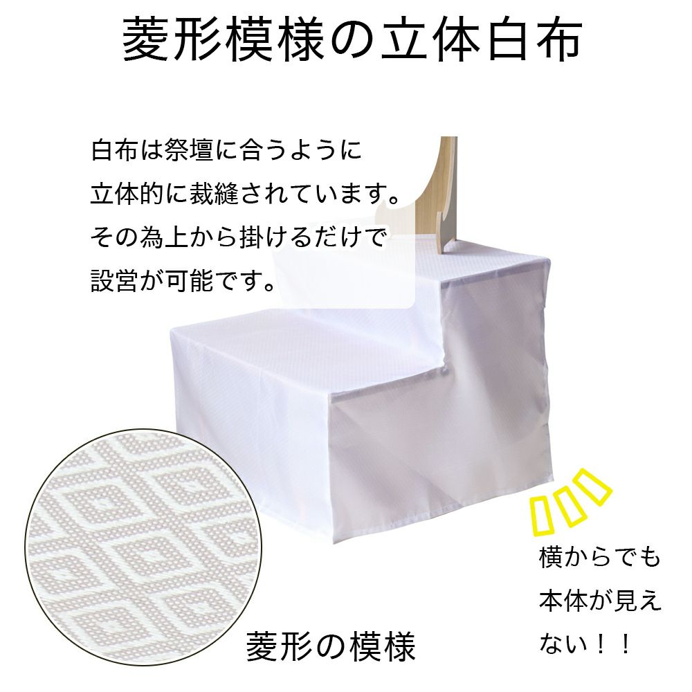 他の画像を見る 工具いらずの簡単組立 白布 写真立て付 祭壇 白木 後飾り 精霊棚 2段 30号 幅90cm 葬儀 木製 お盆 初盆 新盆 盆提灯 四十九日 3尺 盆棚 価格 ¥ 6,930 税込 詳細を見る お気に入りに登録する (0)