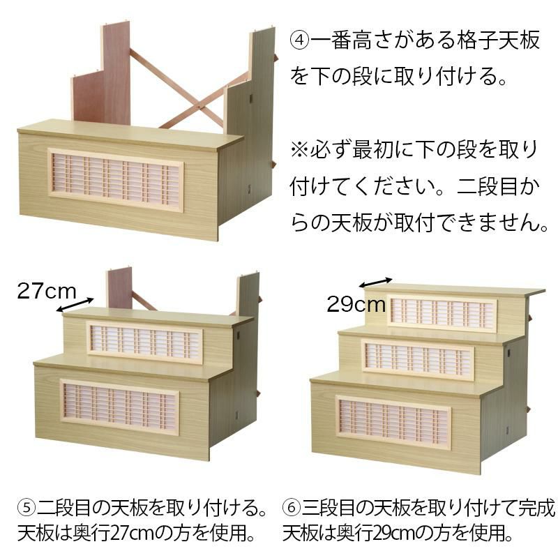 他の画像を見る 木製で安心!工具いらずの簡単組立 写真立て付 後飾り 高級 格子付き 祭壇 木製 3段 30号(幅90cm)葬儀 壇 3尺 お盆 盆棚 飾り 四十九日 精霊棚 おしゃれ 価格 ¥ 29,800 税込 カートに入れる お気に入りに登録する (0)