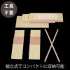 2.足の蝶番を少し折り曲げた状態で左右を立てます。ベニヤ側を内側にしてください。
