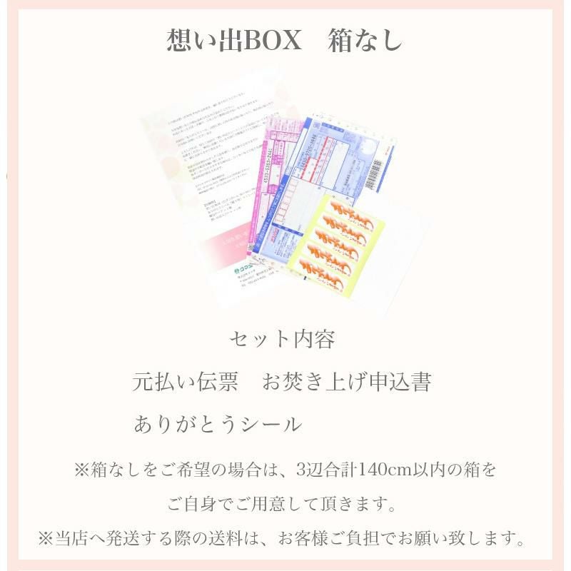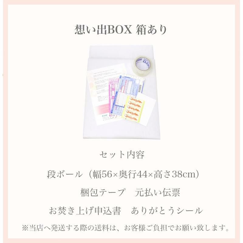 他の画像を見る 大切なお品をまごころ込めて、想い出整理のお手伝いをします。 断捨離【想い出の品を整理しませんか】「想い出BOX」【箱なし】※箱はお客様でご用意 メール便送料無料 遺品整理 人形供養 お焚き上げ 不要品回収 思い出 価格 ¥ 5,000 税込 詳細を見る お気に入りに登録する (0)