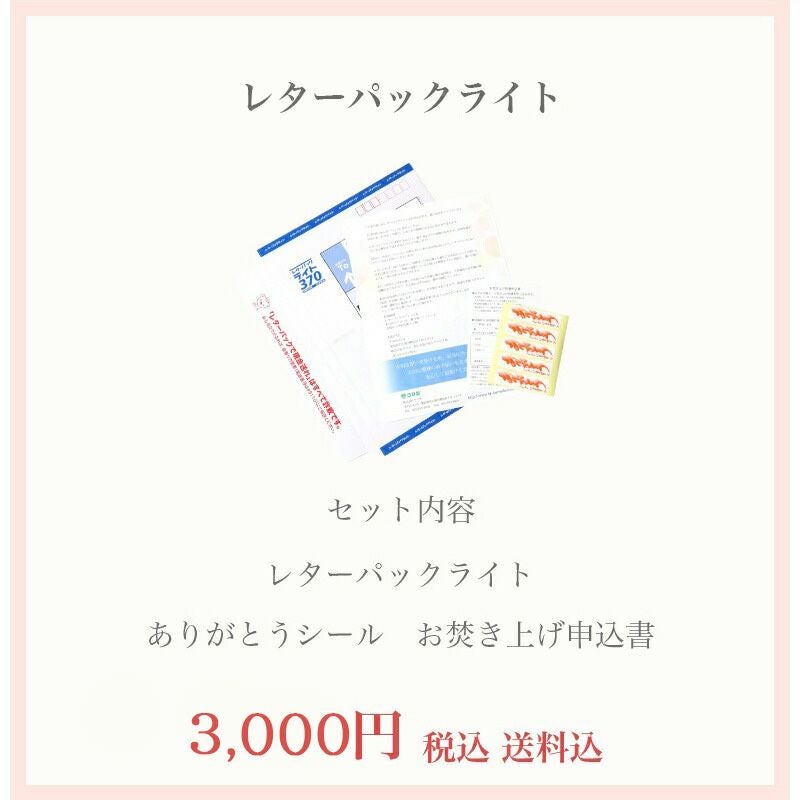 他の画像を見る 大切なお品をまごころ込めて、想い出整理のお手伝いをします。 断捨離【想い出の品を整理しませんか】「想い出レターパック」【ライト】メール便送料無料 遺品整理 お守り 手紙 御札 お焚き上げ 不要品回収 思い出 価格 ¥ 3,000 税込 カートに入れる お気に入りに登録する (0)