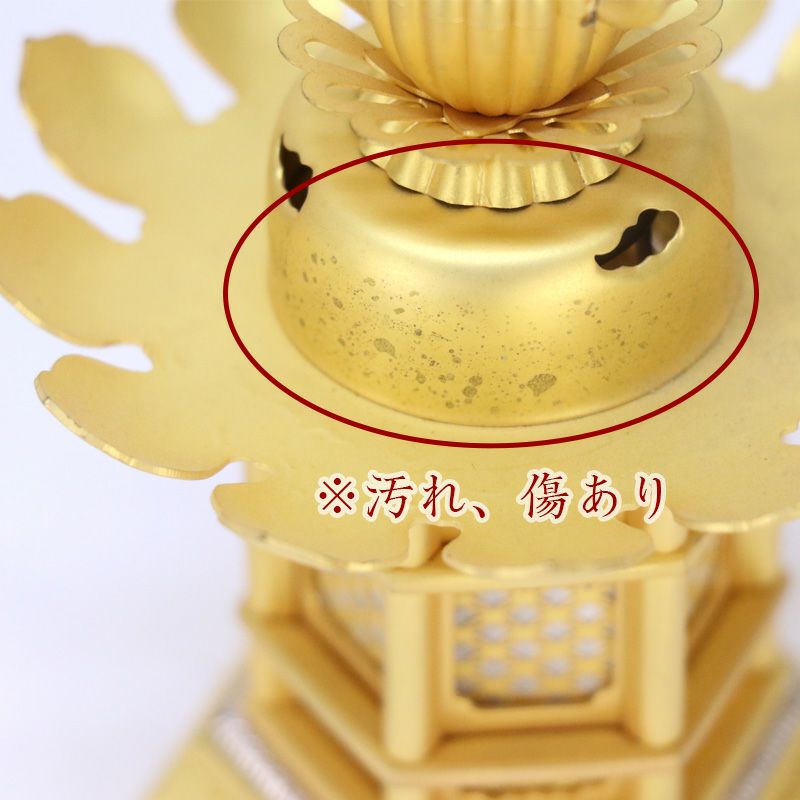他の画像を見る 在庫限りのアウトレット品 / 傷・汚れあり 【アウトレット No.24】「吊灯籠 真鍮 消し金メッキ 神前丁足 1.8寸」 浄土真宗大谷派 お東 仏壇 仏具 価格 ¥ 29,800 税込 詳細を見る お気に入りに登録する (0)