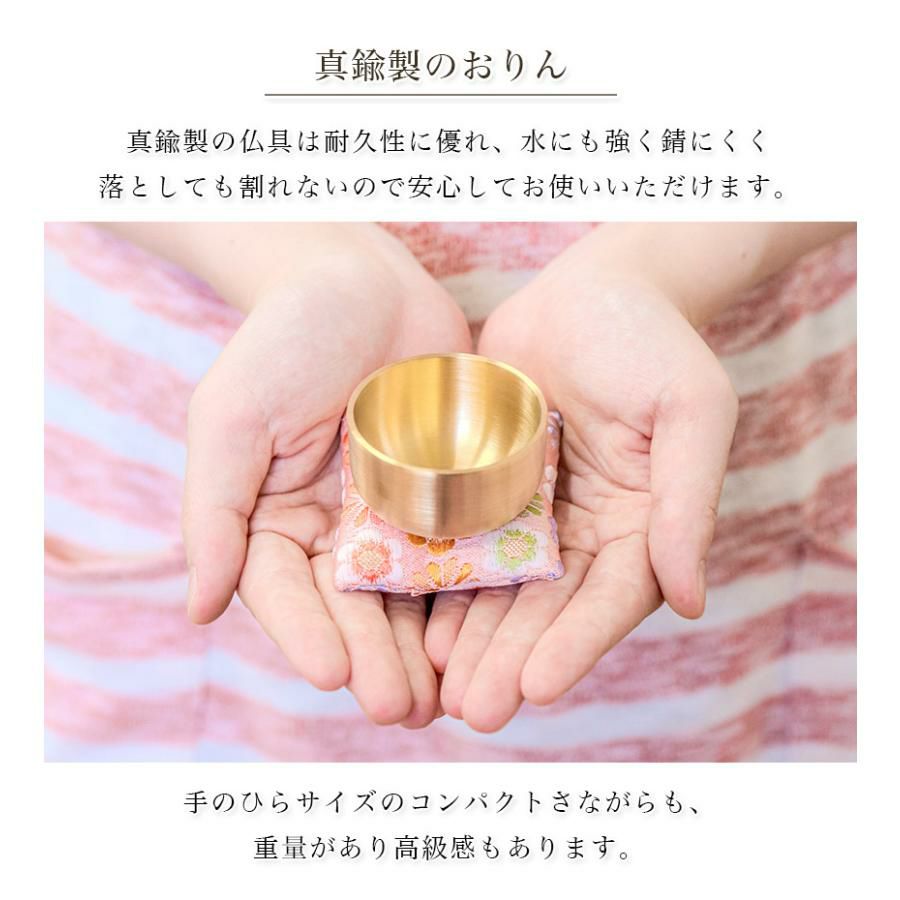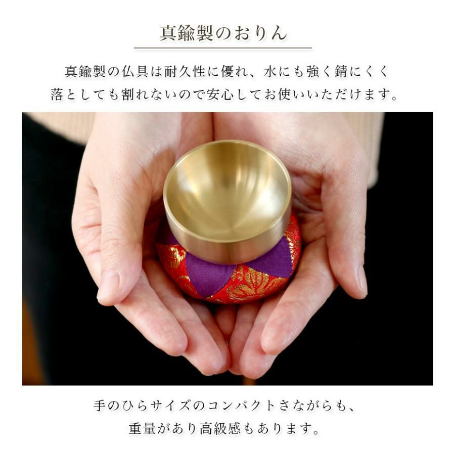 他の画像を見る 可愛らしいサイズの日本製おりん メール便送料無料 ペット用おりん ミニお得りん かれん 1.8寸 国産 3点セット りん棒 りん布団 ペット仏具 小さい 価格 ¥ 2,480 税込 詳細を見る お気に入りに登録する (0)