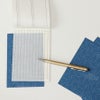 市販の官製はがきにセットのカーボン紙を添えるだけ。縦の罫線も印刷されているので、綺麗にバランスよくはがきに書くことができます。