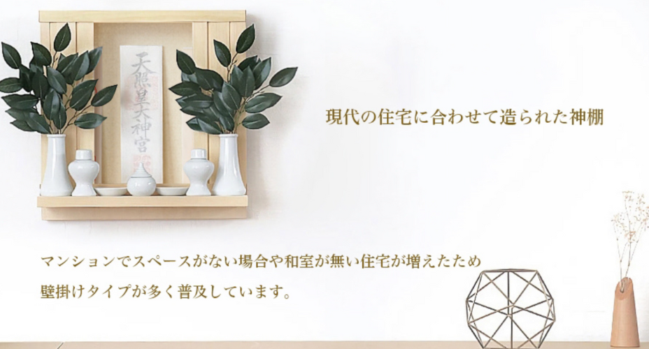 そのため、従来のように大きな神棚を設けるのではなく、コンパクトで設置しやすいデザインが求められるようになりました。