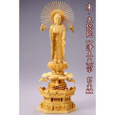 仏像 【総ツゲ製】 六角ケマン台座 6寸(高さ:420mm) 「東立弥陀」 木彫 浄土真宗お東 大谷派 仏壇 仏具のレビューを書く
