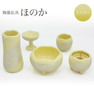 仏具 5点セット 陶器 仏具 「ほのか」中サイズ(カナリアイエロー) 5具足セトモノ モダン 仏壇のレビューを書く