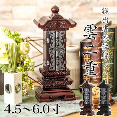 繰出位牌 黒壇 紫壇 「雲二重繰出」 4.5寸・5.0寸・6.0寸 唐木 回出 繰り出し 文字 仏具 名入れのレビューを書く