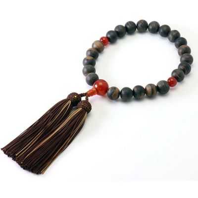 男性用高級念珠・数珠 黒竹×メノウ仕立 22珠 正絹頭付房(KM003)のレビューを書く