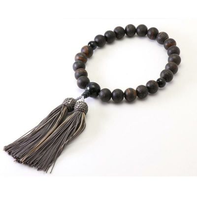 男性用高級念珠・数珠 黒竹×青虎目仕立 22珠 正絹頭付房(KM006)のレビューを書く