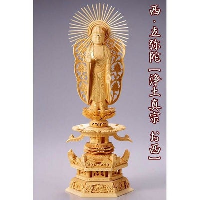 仏像 【白木製】【金泥書き】 六角ケマン台座 4.5寸(高さ:340mm) 「西立弥陀」 木彫 浄土真宗お西 本願寺派のレビューを書く