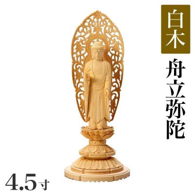 仏像 【白木製】 丸台座 4.5寸(高さ:275mm) 「舟立弥陀」 木彫 浄土宗 高さカテゴリ:280mm~299mmのレビューを書く