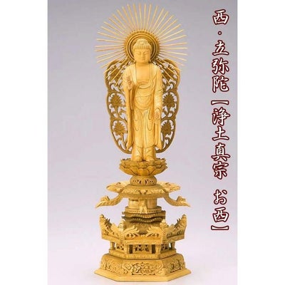 仏像 【楠製】 六角ケマン台座 3.5寸(高さ:275mm) 「西立弥陀」 木彫 浄土真宗お西 本願寺派のレビューを書く