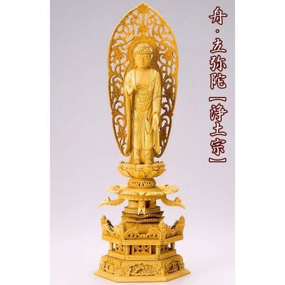 仏像 【楠製】 六角ケマン台座 3寸(高さ:245mm) 「舟立弥陀」 木彫 浄土宗のレビューを書く