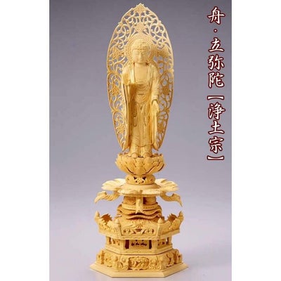 仏像 【総ツゲ製】 六角ケマン台座 4.5寸(高さ:345mm) 「舟立弥陀」 木彫 浄土宗のレビューを書く