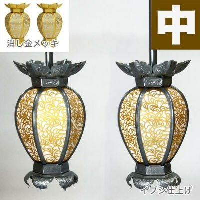 吊燈籠(吊り灯篭) アルミ製 京夏目型 唐草入【消し金メッキorイブシ仕上げ】 中 直径9cm 1対 仏具灯篭(とうろう)灯籠 燈籠のレビューを書く
