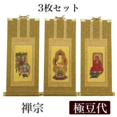 高級掛軸 3枚セット 【禅宗】 極豆代(高さ19cm) 【釈迦如来】【道元禅師】【達磨大師】のレビューを書く