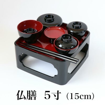 PC仏器膳 椀・箸付 黒塗内朱 5寸 日本製 お仏膳 お盆 新盆 お彼岸 法要 お供え 霊供養のレビューを書く