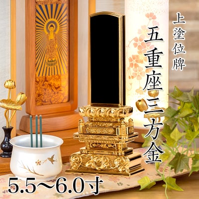 位牌 上塗 「五重座 三方金」 5.5寸・6.0寸 本位牌 塗位牌 高級 文字 仏具 小さい 名入れのレビューを書く